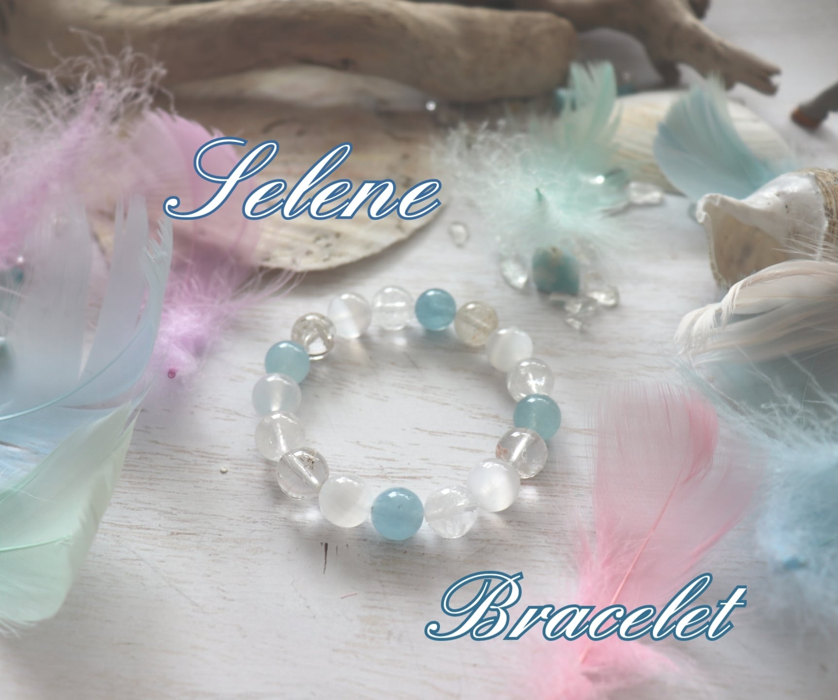 ☪︎ ギリシャの月の女神 ”セレーネ”SELENE が名前の由来の石「セレナイト」のビーズを使いました。