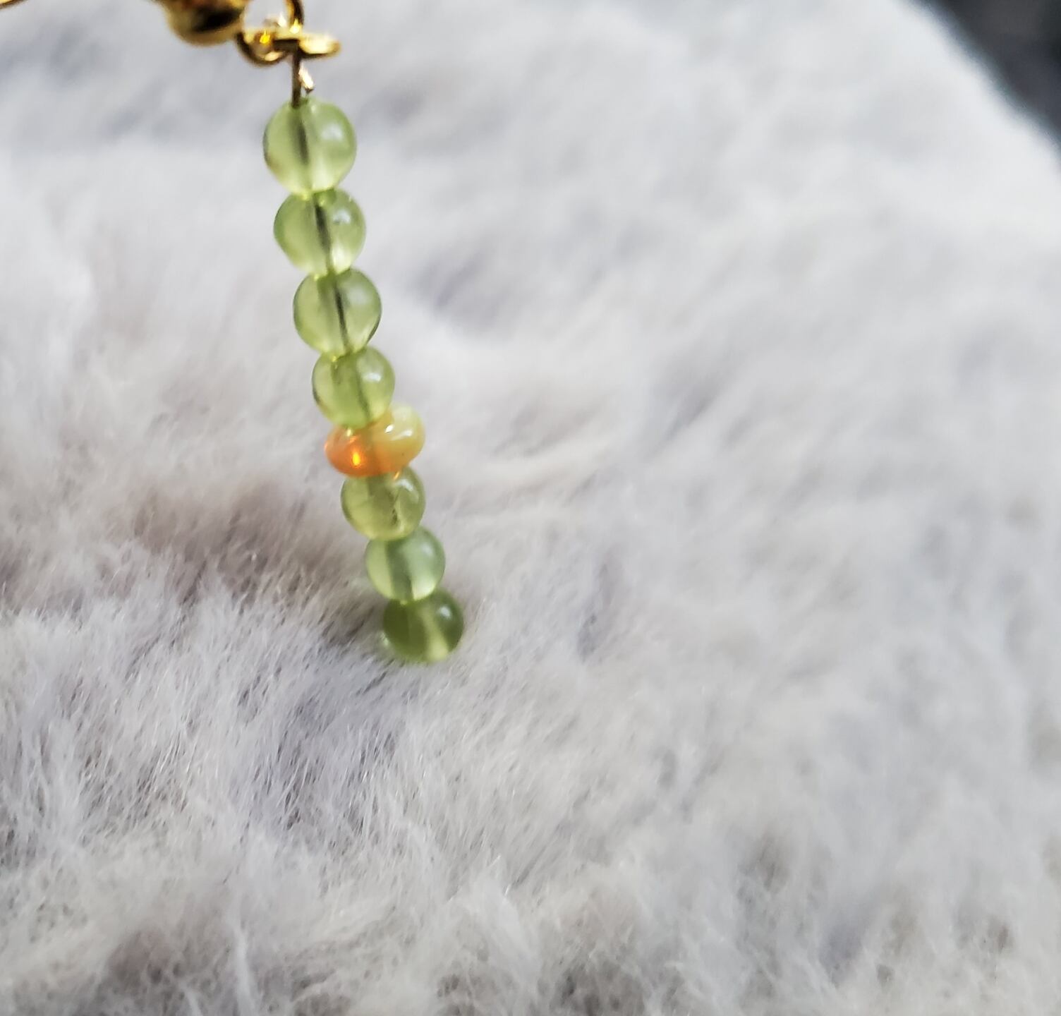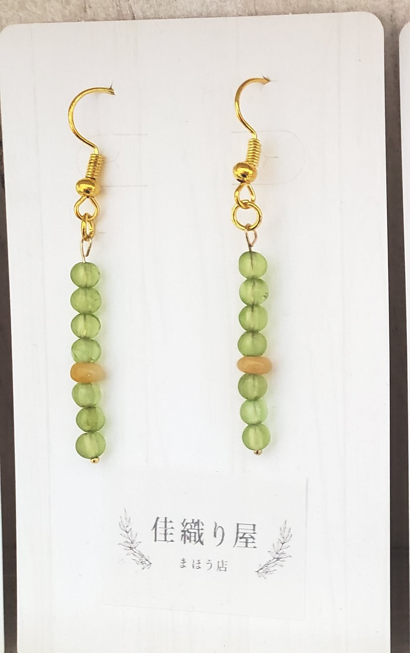 「ペリドット」のグリーンに、ポイントとして黄色の「プレシャスオパール」を使いました。