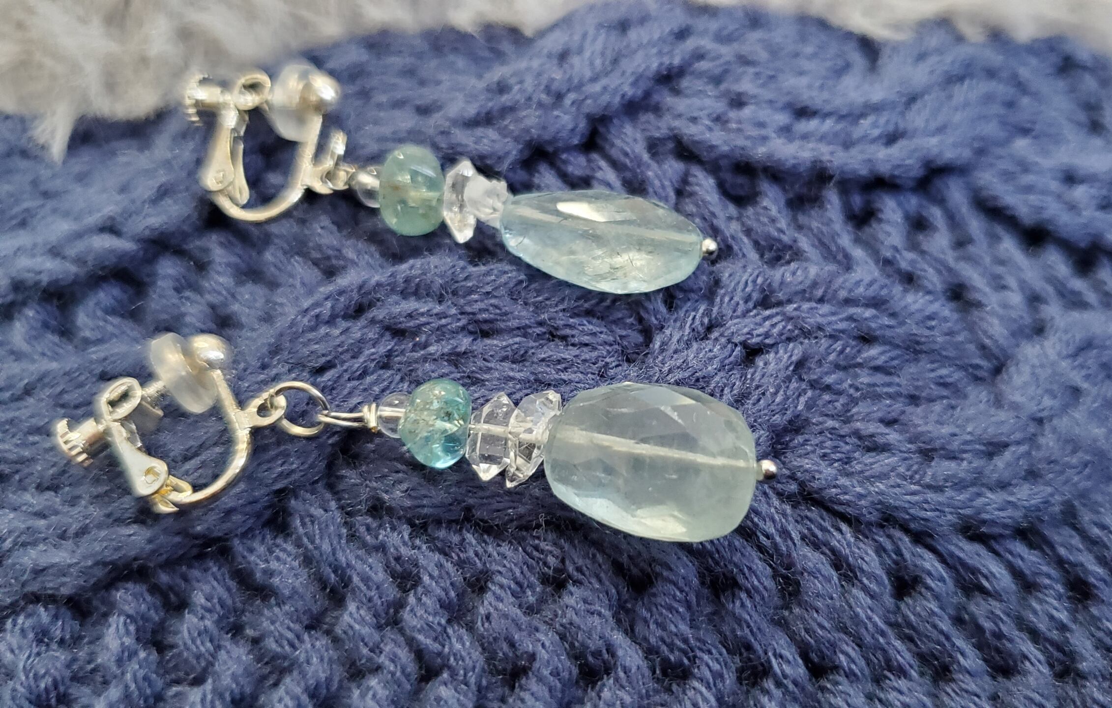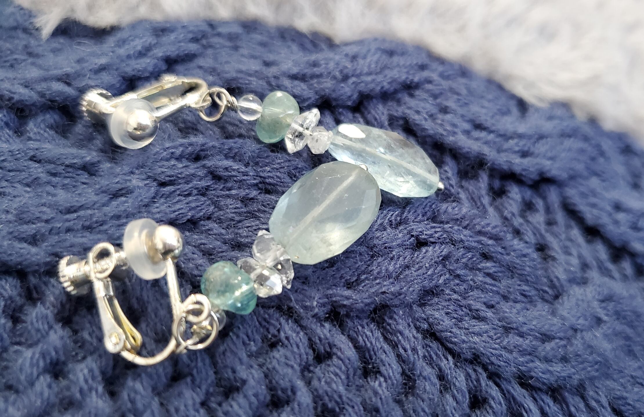 大きめ✨モスアクアマリンのゴージャス・イヤリング