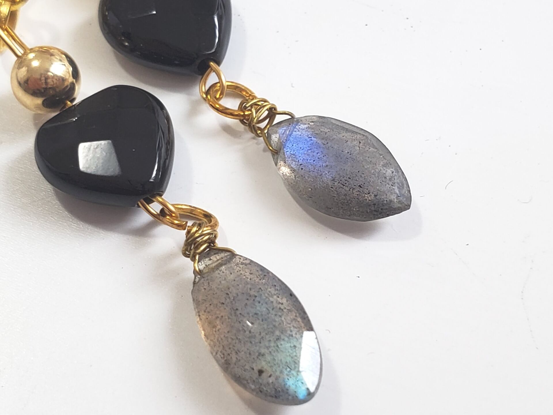 神秘的な輝きを放つ天然石のラブラドライトを使用した、幻想的なイヤリングです。