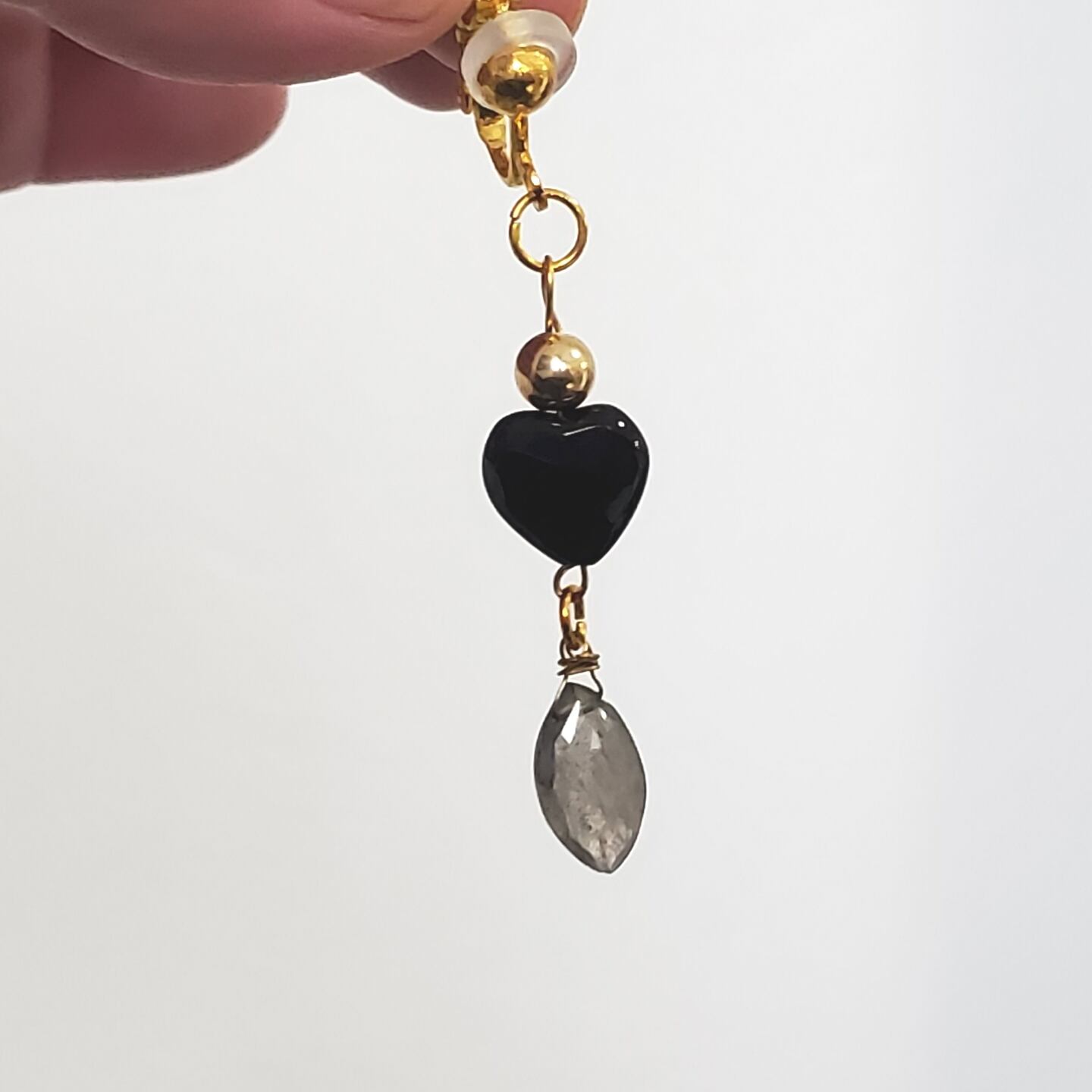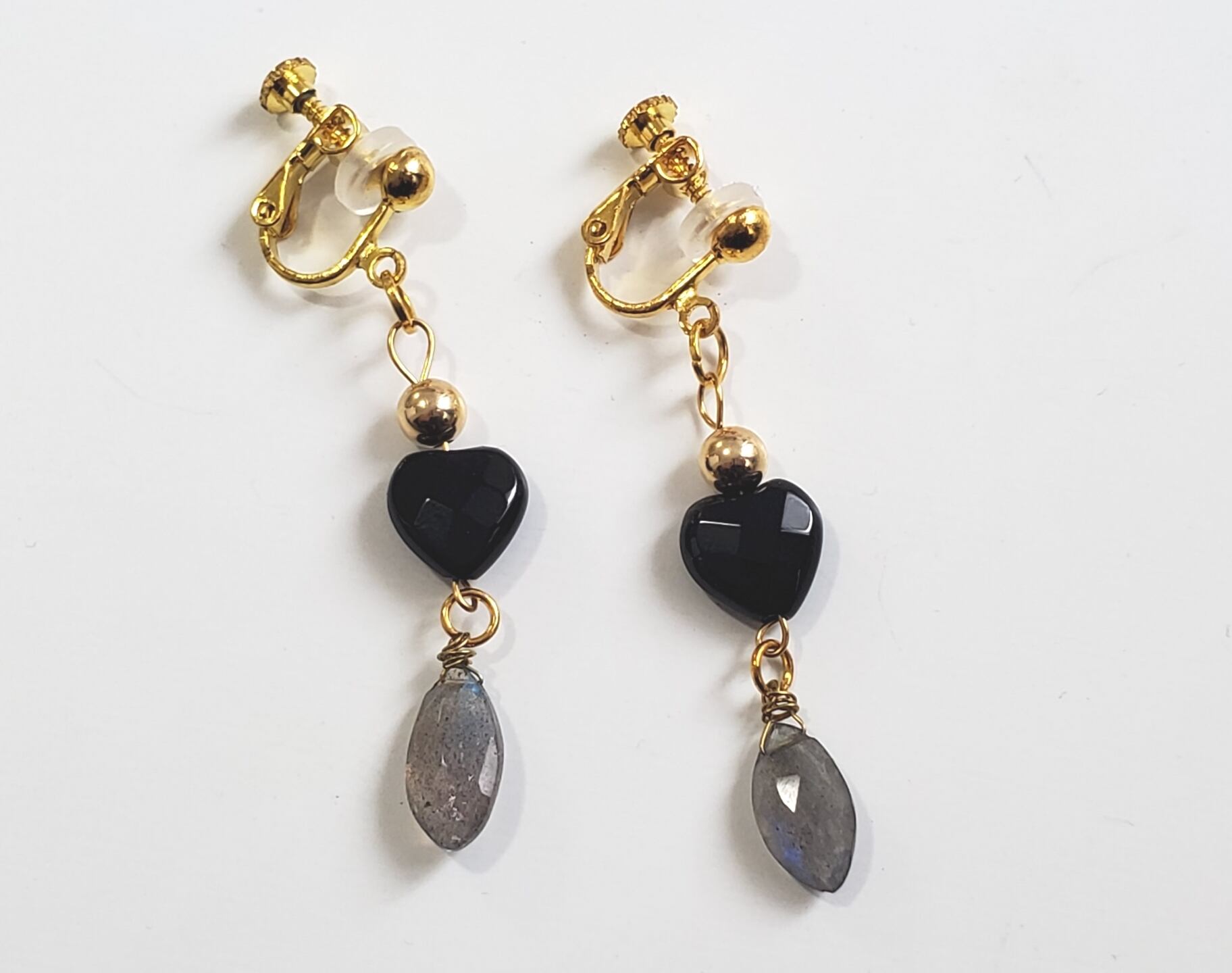 幻想的なブラック/ゆらゆらハート♡のイヤリング