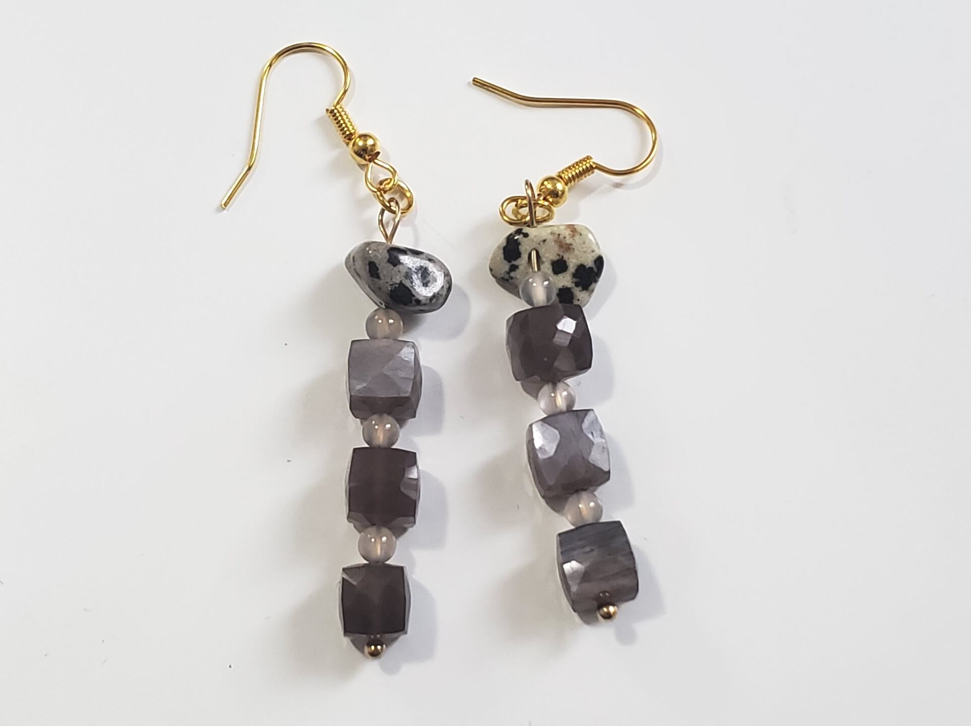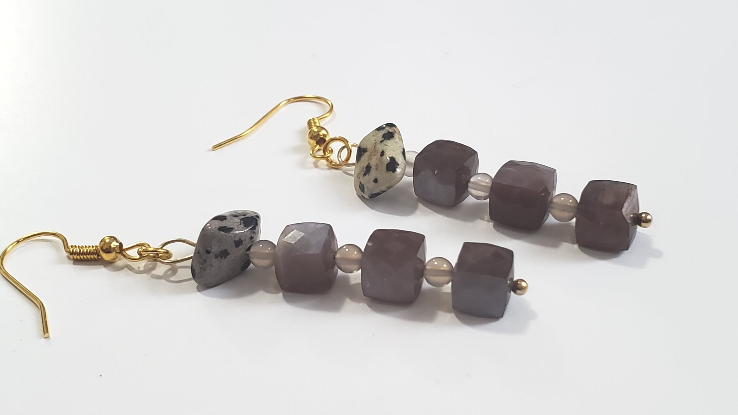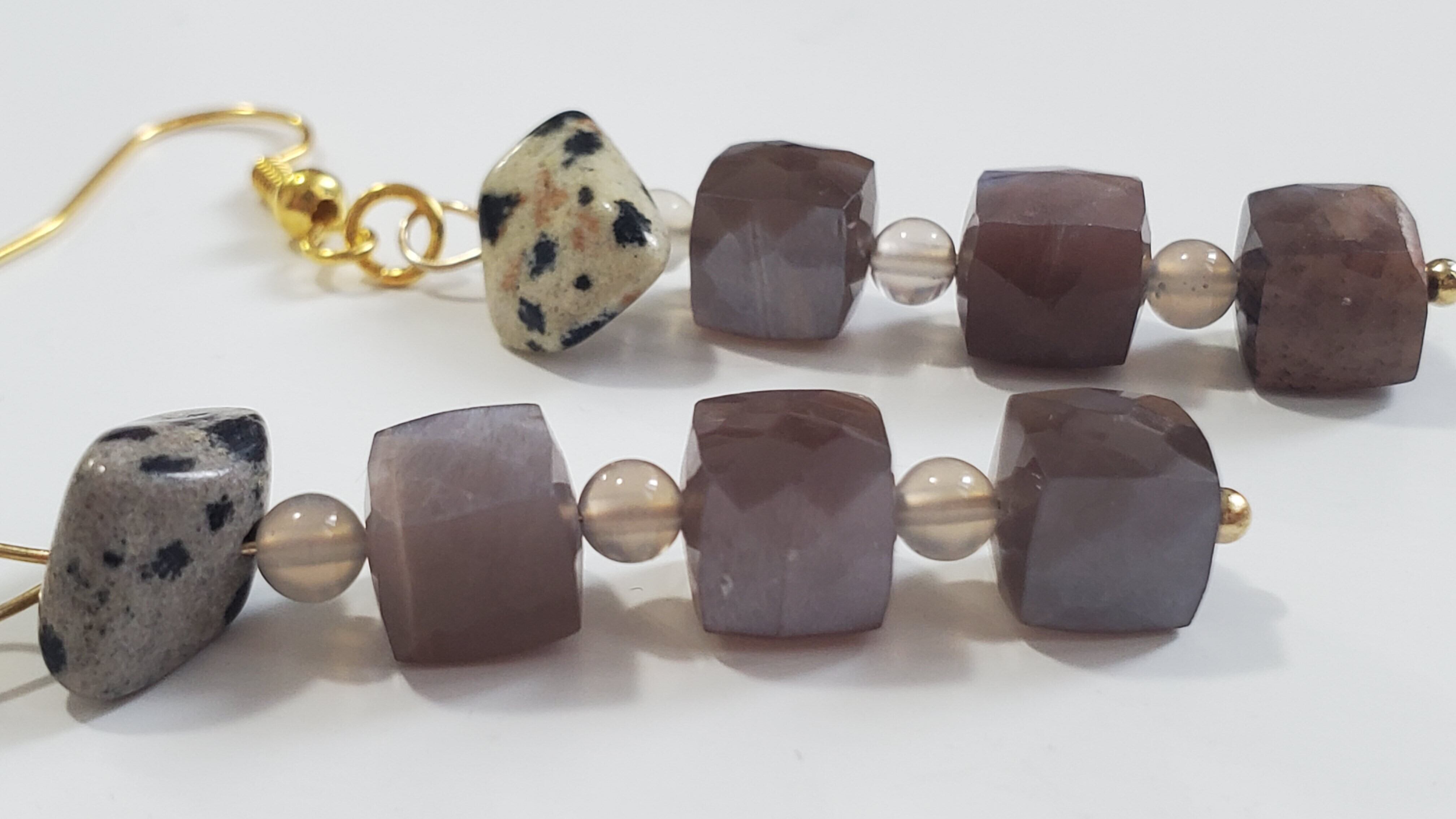 チョコレートみたい! ムーンストーンとダルメシアン柄のピアス