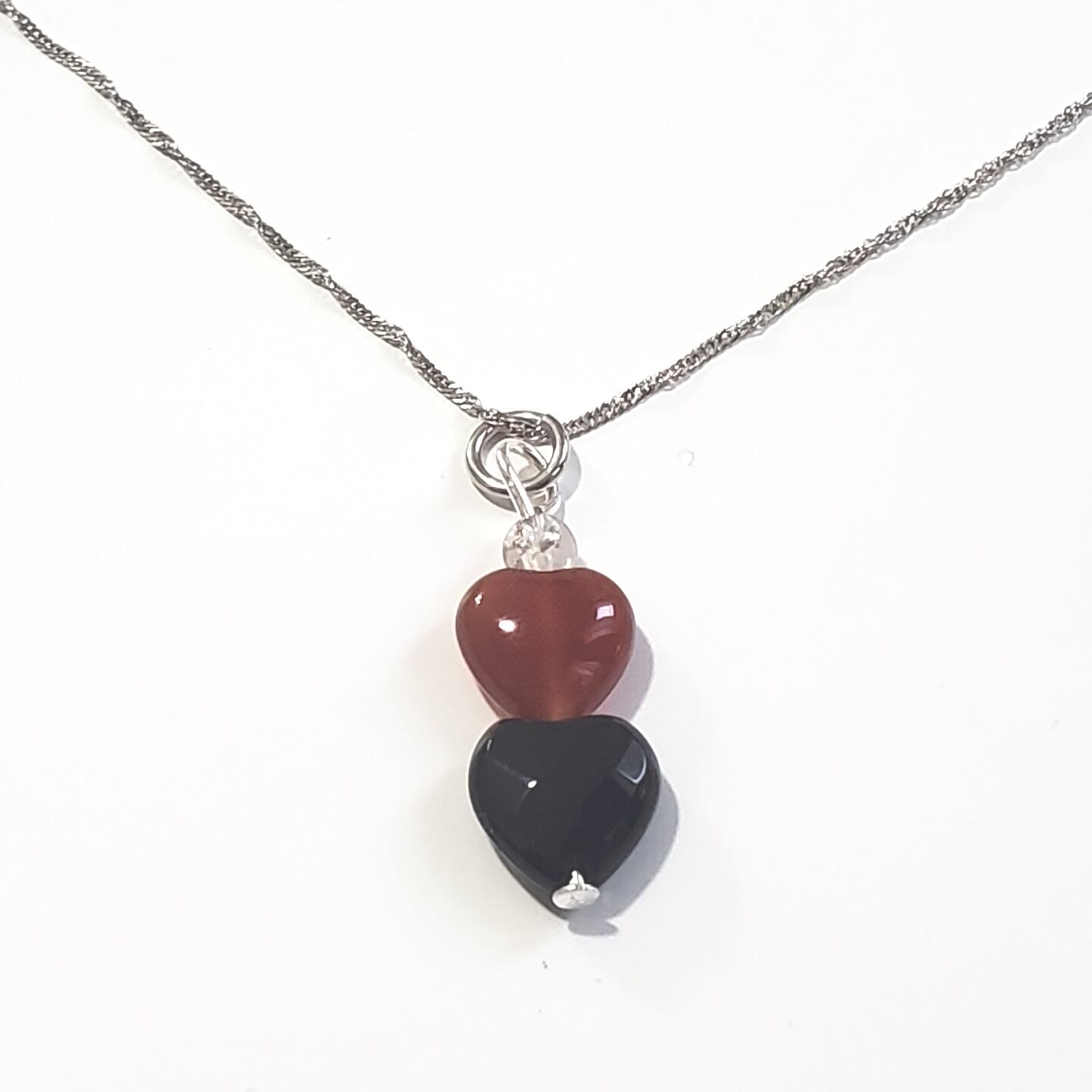 赤と黒リンゴのような❤◼ダブルハート♡ネックレス
