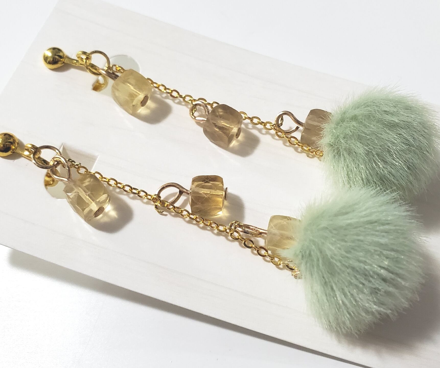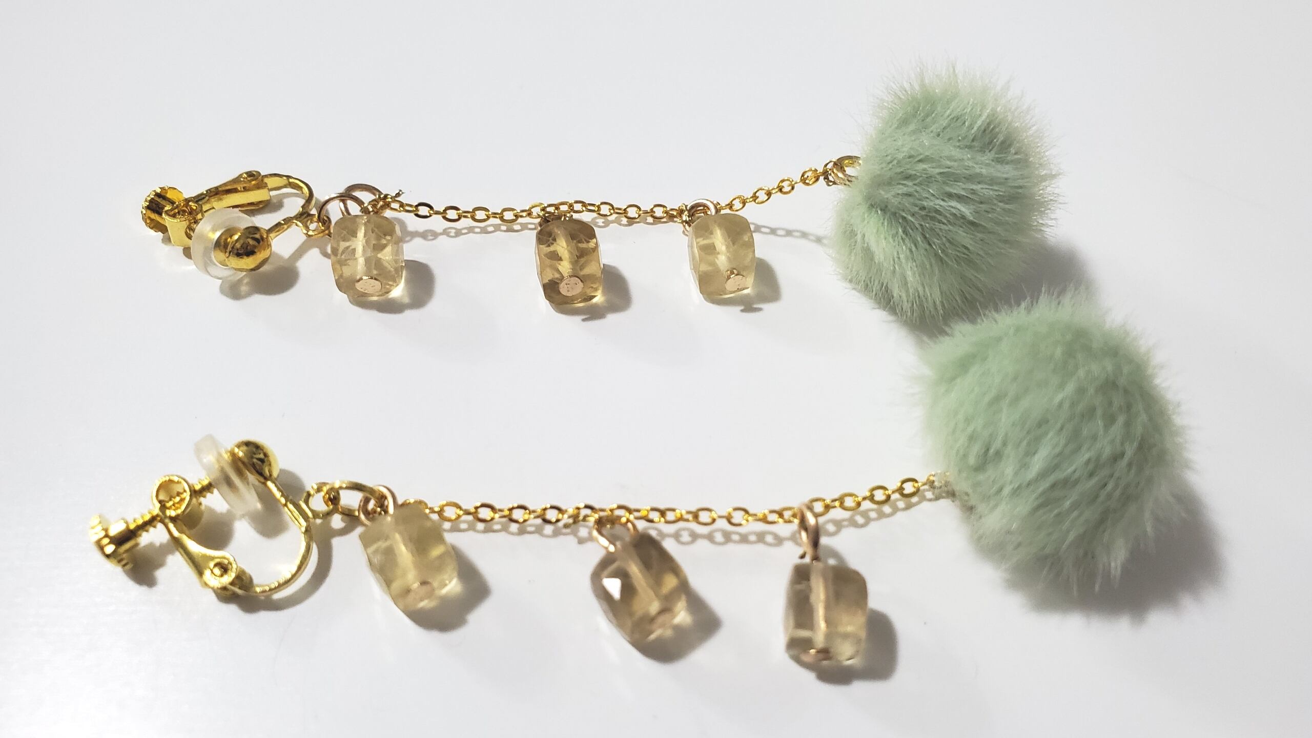 ゆらゆら✨ふわふわ✨キラキラ✨イエローとグリーンのふわキライヤリング