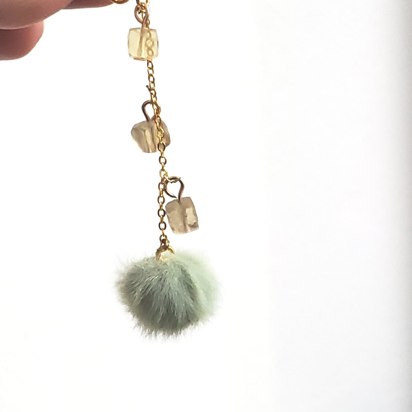 シックなグリーンのふわふわファーが、ゆれて可愛い✨